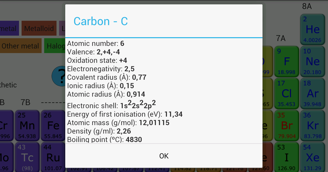 periodic table information list